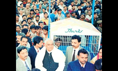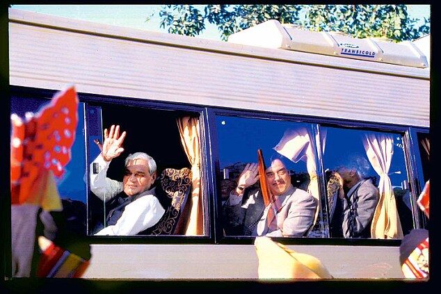 लाहौर बस सेवा के शुभारम्भ के अवसर पर बस में सवार अटल जी