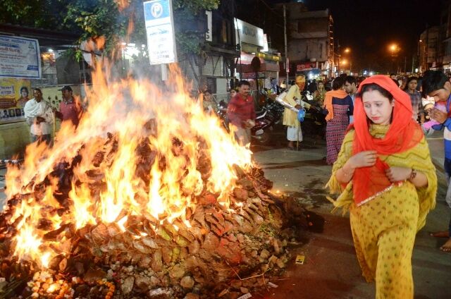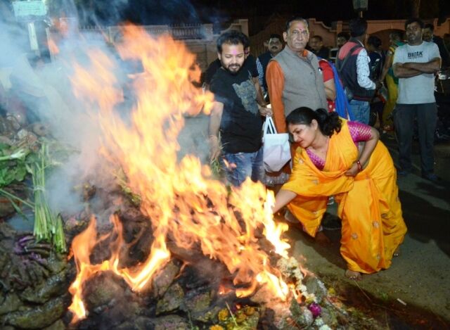 होलिका दहन होते हुए
