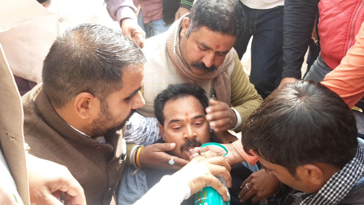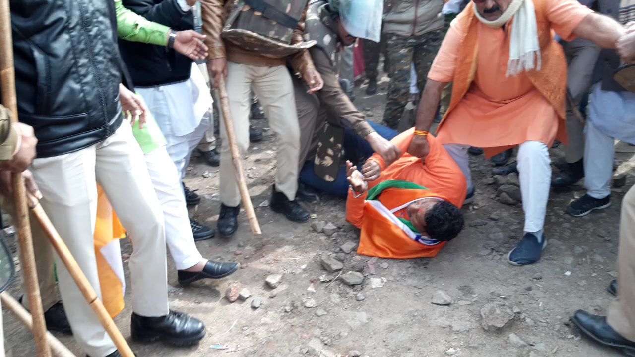 पुलिस ने लाठी चार्ज कर दिया जिसमें दो कार्यकर्ता घायल हो गए।