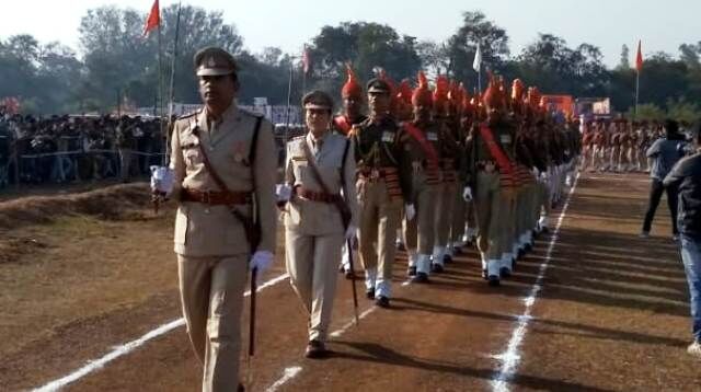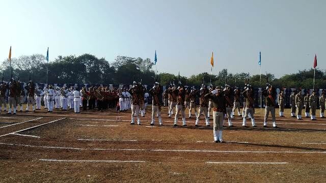 परेड में जवान सलामी देते हुए