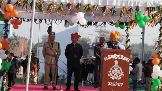 मंत्री प्रद्युमन तोमर मुख्यमंत्री के सन्देश का वाचन करते हुए