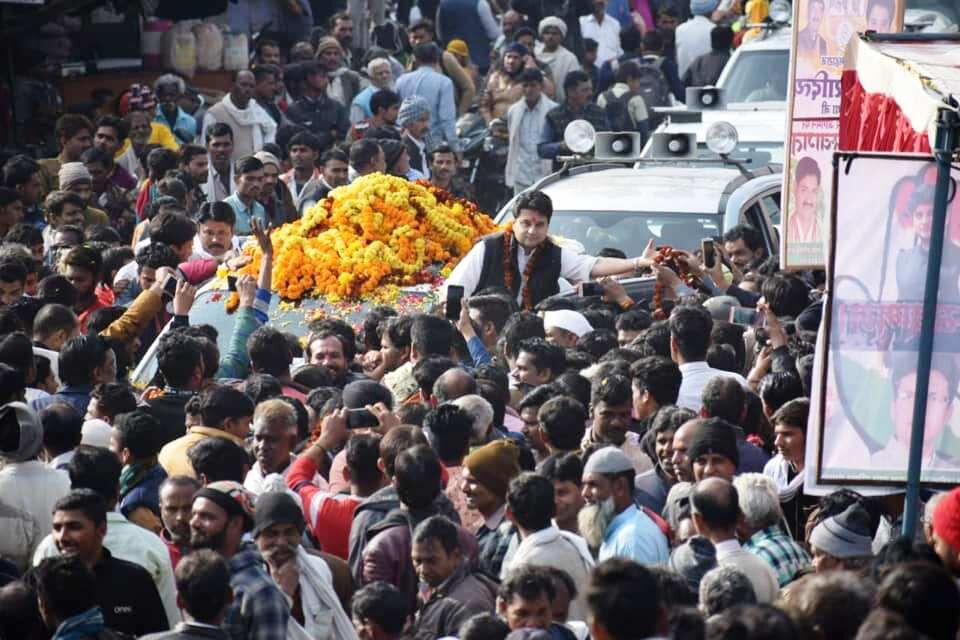 मुंगावली पहुँचने पर कांग्रेस कार्यकर्ताओं ने राष्ट्रीय महासचिव ज्योतिरादित्य सिंधिया का किया स्वागत
