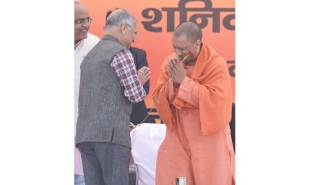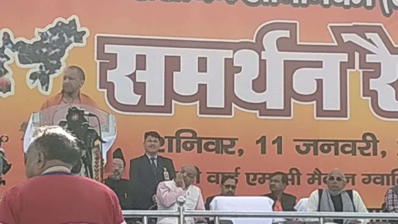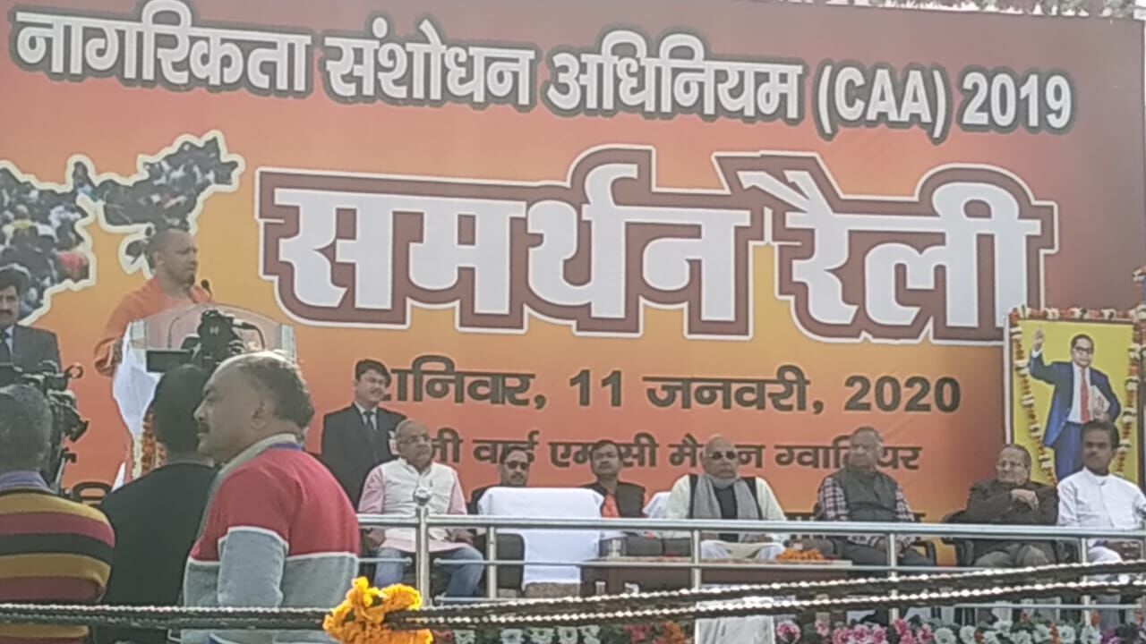 नागरिकता कानून के समर्थन में विशाल रैली से पहले उप्र के मुख्यमंत्री योगी आदित्यनाथ जनसभा को संबोधित किया ।स्थान - जी वाय एम सी, ग्राउंड