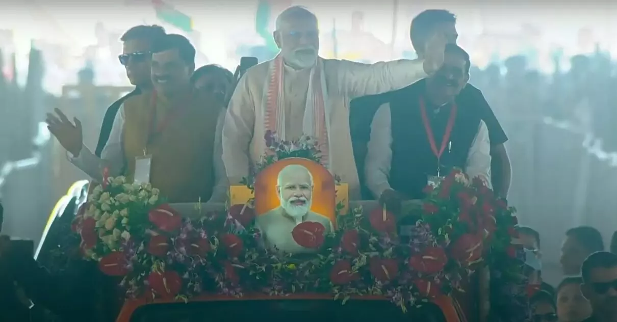 पीएम मोदी ओपन जीप में जम्बूरी मैदान पहुंचे हैं। ओपन जीप में उनके साथ सीएम मोहन यादव, बीजेपी प्रदेश अध्यक्ष वीडी शर्मा मौजूद हैं।