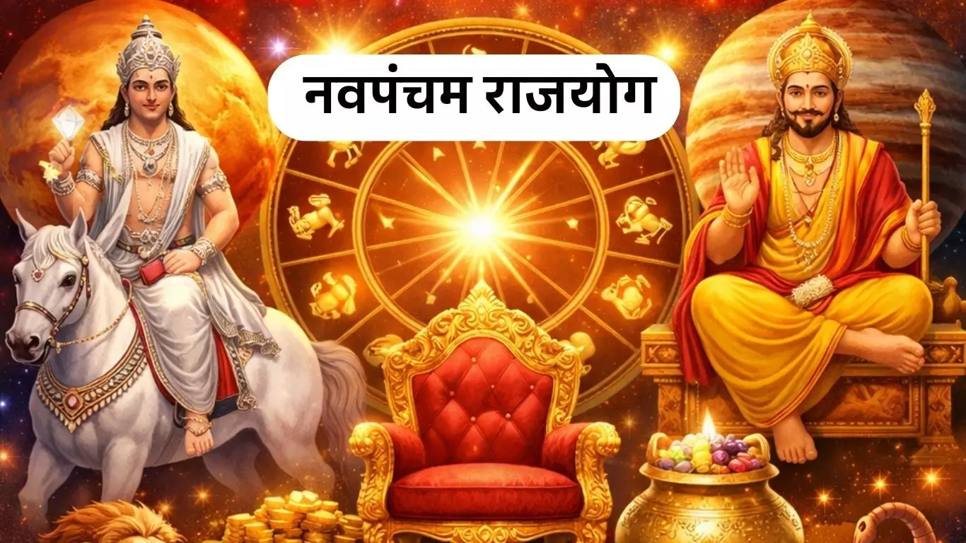 ज्योतिष शास्त्र में ग्रहों की विशेष युति और राजयोगों को जीवन में बड़े बदलाव लाने वाला माना जाता है। साल 2026 की शुरुआत में एक अत्यंत शुभ संयोग बनने जा रहा है। जब सुख-समृद्धि के कारक शुक्र और भाग्य के स्वामी देवगुरु बृहस्पति मिलकर नवपंचम राजयोग का निर्माण करेंगे। इस शक्तिशाली योग के प्रभाव से कई राशियों के जीवन में तरक्की, धन लाभ और सौभाग्य के नए द्वार खुल सकते हैं।