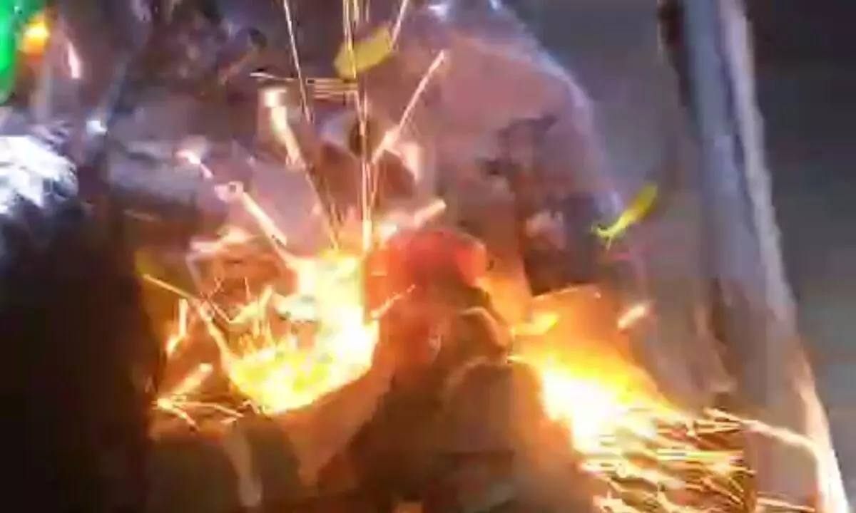 शिवपुरी में हादसा, ओवर ब्रिज से टकराया लोडिंग वाहन,ड्राइवर को कटर से काटकर बाहर निकाला