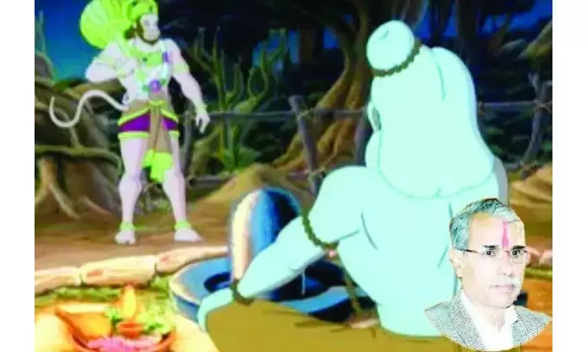 दूसरा प्रसंग लंका काँड में राक्षस कालनेमि का है। वह रावण का दरबारी था, रावण की योजना से हनुमान जी का मार्ग रोकने आया था हनुमान जी ने पहचान लिया और उसका अंत करने में कोई विलंब न किया। कथानुसार राम रावण युद्ध में लक्ष्मणजी मारक शक्ति के प्रहार से अचेत हो गये थे। उपचार के लिये वैद्यराज सुषेण ने बताया कि संजीवनी बूटी से प्राण बचाये जा सकते हैं । हनुमान जी संजीवनी बूटी लेने रवाना हुये । औषधि लेकर उन्हे सूर्योदय से पूर्व लौटना था । रावण की योजनानुसार राक्षस कालनेमि ने साधु वेश धारण किया और माया से आसपास का वातावरण भक्तिमय बनाया। स्वयं बैठकर राम नाम जपने का अभिनय करने लगा। हनुमान जी श्रृद्धा सहित संत वेश में बैठे कालनेमि के पास पहुँचे। प्रणाम किया। संत रूपी कालनेमि ने मोहक और मीठी बातों से हनुमान जी को भ्रमित कर दिया। कपट मुनि कालनेमि ने यात्रा सुगम बनाने और औषधि की पहचान बताने का लालच देकर हनुमान जी को स्नान करने भेज दिया ताकि विलंब हो और हनुमान जी सूर्योदय से पूर्व औषधि लेकर लंका न लौट सकें। वहाँ उन्हें एक देव कन्या मिली। उसने सचेत किया कि यह संत बनाबटी है। इसका उद्देश्य आपको भ्रमित करना है। हनुमान जी सतर्क हुये, वे धीरे से आये, प्रणाम करने के बहाने से कपट मुनि के पास पहुँचे और उस छद्म वेषधारी राक्षस कालनेमि को दंडित करके अपने लक्ष्य की ओर आगे बढ़ गये ।