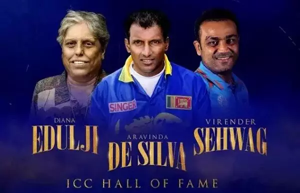 नई दिल्ली (New Delhi)। अंतरराष्ट्रीय क्रिकेट परिषद (आईसीसी) ने अरविंदा डी सिल्वा, डायना एडुल्जी और वीरेंद्र सहवाग को आईसीसी हॉल ऑफ फेम में शामिल किया है।