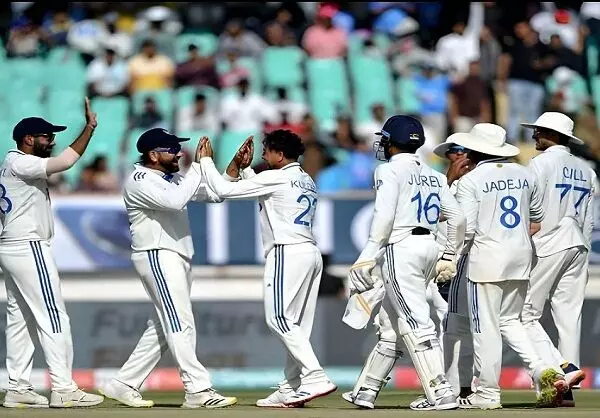 राजकोट (Rajkot)। भारतीय टीम (Indian team) ने राजकोट (Rajkot) में खेले गए तीसरे टेस्ट मैच (third test match) में इंग्लैंड (England) को 434 रनों के बड़े अंतर (defeated huge margin of 434 runs) से हरा दिया है। भारतीय टीम (Indian team) की यह टेस्ट क्रिकेट में रनों के अंतर से सबसे बड़ी जीत है। इससे पहले भारतीय टीम (Indian team) ने 2021 में मुंबई के वानखेड़े स्टेडियम में न्यूजीलैंड को 372 रन से हराया था। इस जीत के साथ भारतीय टीम पांच मैचों की टेस्ट सीरीज में 2-1 से आगे हो गई है। सीरीज का चौथा मैच 23 फरवरी से रांची में खेला जाएगा।