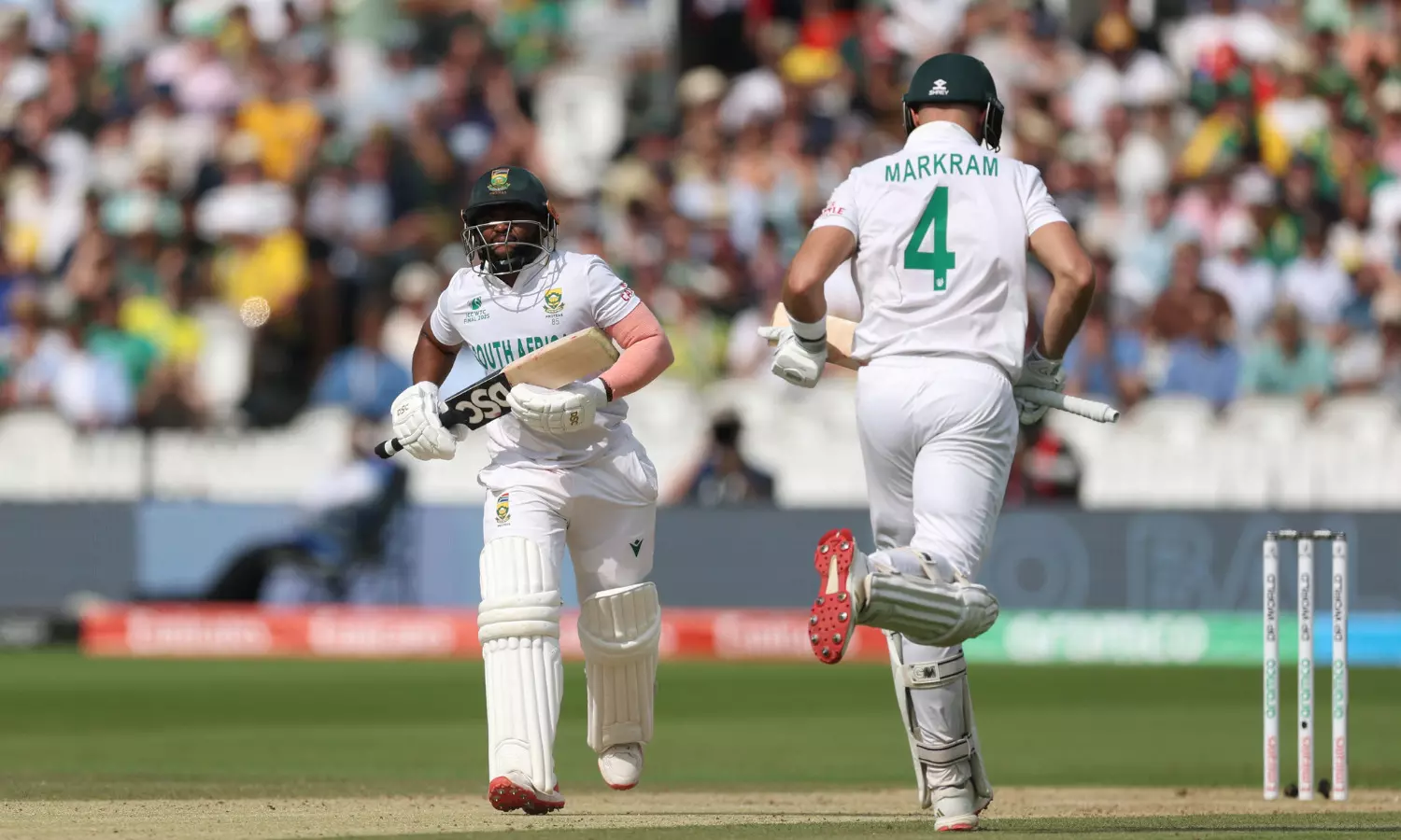 वियान मुल्डर के आउट होने के बाद एडन मार्करम और कप्तान टेंबा बवुमा ने मोर्चा संभाल लिया। दोनों ने मिलकर शानदार साझेदारी करते हुए तीसरे विकेट के लिए 143 रन जोड़े। मार्करम ने शानदार शतक लगाया। वहीं चोट के बावजूद बवुमा ने 65 रन की नाबाद जुझारू पारी खेली।