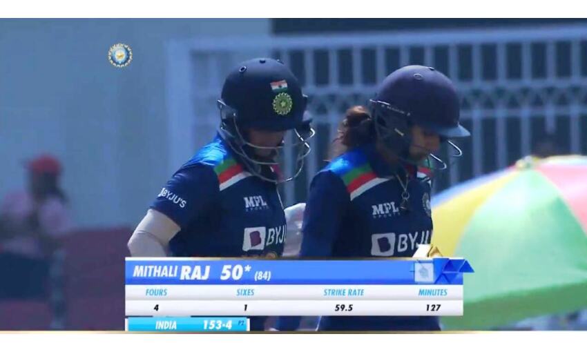 इसके बाद मिताली राज (50) और हरमनप्रीत कौर (40) ने चौथे विकेट के लिए 62 रनों की साझेदारी कर भारत का स्कोर 100 के पार पहुंचा दिया। 102 के कुल स्कोर पर हरमनप्रीत को सुने लुस ने आउट कर यह साझेदारी तोड़ी। हरमन के आउट होने के बाद दीप्ति शर्मा (27) ने मिताली का अच्छा साथ निभाया और दोनों ने मिलकर स्कोर 150 के पार पहुंचाया।पेपेहले 154 के कुल स्कोर पर मिताली के आउट होने के बाद भारतीय टीम के विकेट लगातार गिरते रहे और 50 ओवर की समाप्ति पर भारतीय टीम 177 रन ही बना सकी। दक्षिण अफ्रीका की तरफ से शबनीम इस्माइल ने सर्वाधिक 3,नोन कुलूलेको मलाबा ने 2 और सुने लुस,मरीजने कप्प व अयोबांगा खाके ने 1-1 विकेट लिया।