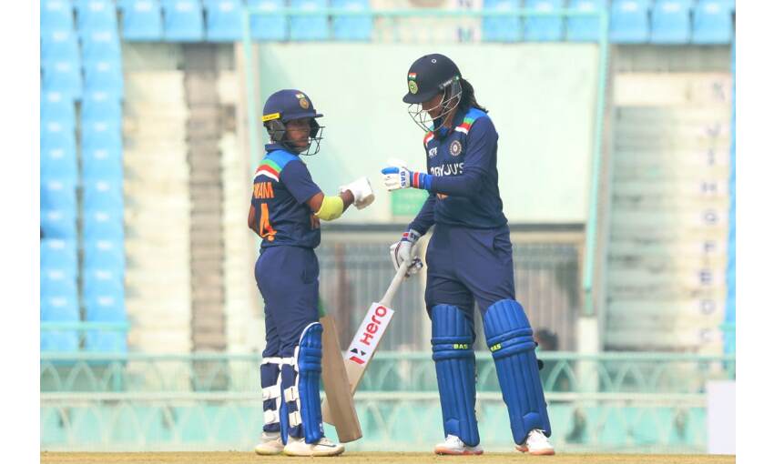 इसके बाद स्मृति मंधाना और पूनम राउत के बीच 64 रनों की साझेदारी हुई। इस साझेदारी को तोड़ा सेहुक्खूने ने। उन्होंने मंधाना को (25) को अपना शिकार बनाया। 141 के कुल स्कोर पर कप्तान मिताली राज 36 रन बनाकर अन्ने बोश की गेंद पर आउट हुईं। 161 के कुल स्कोर पर मारिजने कप्प ने पूनम (77) को आउट कर भारत को चौथा झटका दिया। इसके बाद 221 के कुल स्कोर पर इस्माइल ने हरमनप्रीत (36) को आउट कर भारत को पांचवां झटका दिया। दीप्ति शर्मा 36 और सुषमा वर्मा 14 रन बनाकर नाबाद रहीं। दक्षिण अफ्रीका की तरफ से शबनिम इस्माइल ने 2,मारिजने कप्प, तुमी सेहुक्खूने और अन्ने बॉस ने 1-1 विकेट लिया।