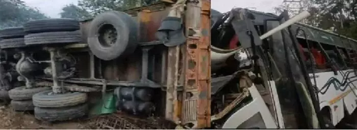 बस ट्रक में भिड़ंत, तीन बच्चों समेत 12 लोगों की मौत