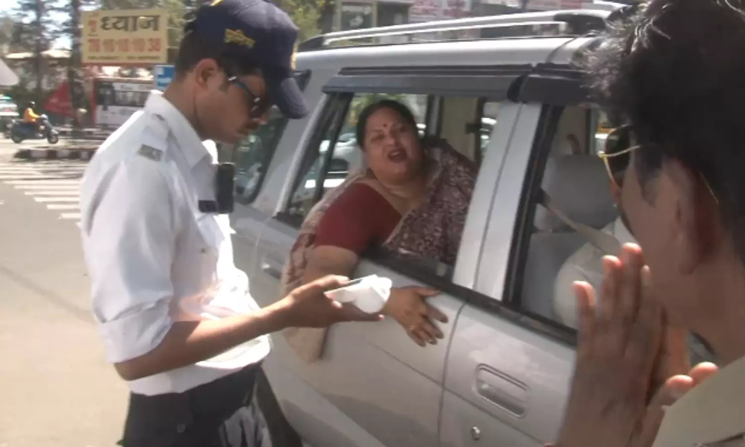 मध्य प्रदेश। भोपाल के वार्ड - 31 की भाजपा पार्षद और जोन - 7 की अध्यक्ष बृजला सचान की गाड़ी का चालान काटा गया है। चालन काटते हुए पार्षद बृजला सचान और महिला पुलिस अधिकारी के बीच बहस हो गई। इस विवाद का एक वीडियो भी सामने आया है जिसमें पुलिस अधिकारी चालान कटाने के लिए भाजपा पार्षद से हाथ जोड़ते नजर आ रहीं हैं।