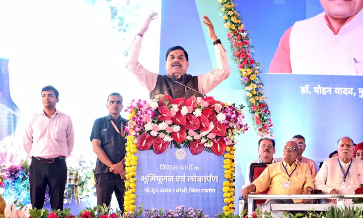मुख्यमंत्री डॉ. यादव सोमवार को रायसेन जिले की बरेली में विभिन्न विकास कार्यों के लोकार्पण एवं भूमिपूजन कार्यक्रम को संबोधित कर रहे थे। इस अवसर पर मुख्यमंत्री डॉ. यादव ने स्वास्थ्य विभाग के निर्माण कार्यों सहित कुल 138.96 करोड़ की लागत वाले विकास कार्यों का लोकार्पण एवं भूमिपूजन किया। मुख्यमंत्री ने चयनित हितग्राहियों को विभिन्न शासकीय योजनाओं के हितलाभ भी वितरित किए। सिंगल क्लिक के माध्यम से लाड़ली बहनों के खाते में 1250 रुपए भी डाले गए। मुख्यमंत्री डॉ. यादव ने जल गंगा संवर्द्धन अभियान के तहत स्थानीय जनप्रतिनिधियों के साथ पौधरोपण भी किया।