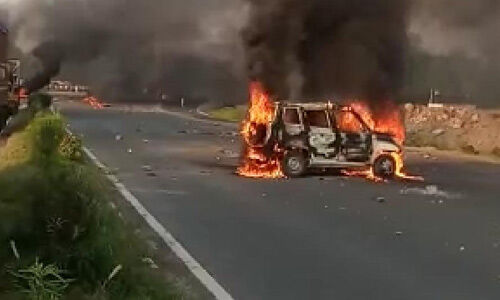 डूंगरपुर/उदयपुर। डूंगरपुर और उदयपुर के खेरवाड़ा में चल रहा प्रदर्शन रविवार सुबह थोड़ा शांत रहा। खेरवाड़ा में प्रदर्शनकारी पहाडिय़ों पर बैठ गए हैं। डूंगरपुर के पास दोवड़ा में सुबह करीब 4 बजे एक गाड़ी में आग लगा दी गई। प्रदर्शनकारियों ने हाइवे अब भी बहाल नहीं होने दिया है। देर रात कुछ उपद्रवी हाइवे के पास बनी श्रीनाथ कॉलोनी में घुस गए जहां तोड़फोड़ की गई। कई घरों के शीशे तोड़ दिए गए। साथ ही कार और बाइक को आग के हवाले कर दिया गया जिससे लोग रातभर डर के साये में रहे।