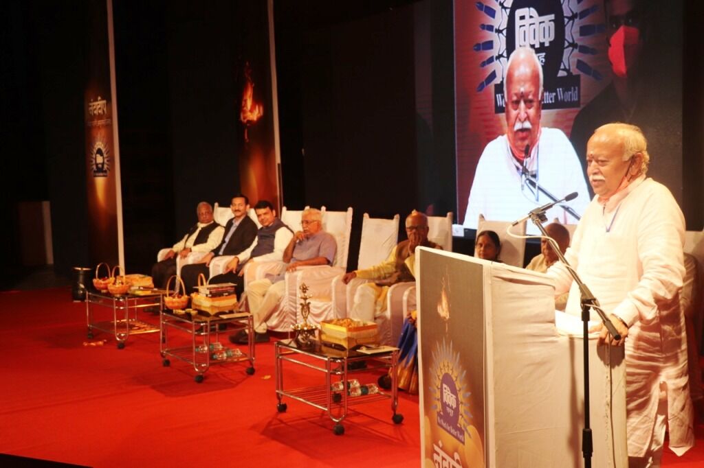 मुंबई। स्व.स.से. श्री रमेश पतंगे जी के पीछे संघ नहीं खड़ा है। श्री पतंगे जी के हृदय में संघ है। यह सच है कि संघ कुछ नहीं करता इसीलिए पतंगे जी ने अपने सारे कृतित्व को समर्पित किया पर स्वयंसेवक सब कुछ करते हैं और यही श्री पतंगे ने किया। यह बात राष्ट्रीय स्वयं सेवक संघ के पूजनीय सरसंघचालक श्री मोहन भागवत ने सामाजिक समरसता के नायक एवं वरिष्ठ पत्रकार श्री रमेश पतंगे के अमृत महोत्सव के अवसर पर कही। श्री भागवत ने कहा संघ विचार याने अमृत। संघ याने ढाई आखर प्रेम का। श्री पतंगे ने अपने लेखन से, सामाजिक समरसता के माध्यम से यह कर दिखाया। आज महाराष्ट्र में समरसता का उन्होंने मॉडल खड़ा किया वह सभी के लिए प्रेरक है।