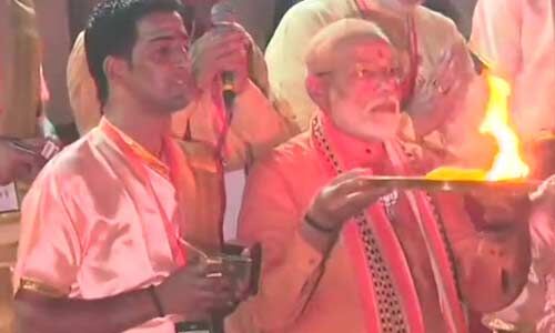प्रधानमंत्री मोदी गुरुवार को दोपहर बाद वाराणसी पहुंचे। सबसे पहले शाम 5.21 बजे उन्होंने काशी विश्वविद्यालय में महामना पंडित मदन मोहन मालवीय की प्रतिमा पर माल्यार्पण कर उन्हें अपनी श्रद्धांजलि दी। पूरी श्रद्धा से जनता का सिर झुकाकर अभिवादन किया। 5.20 बजे उन्होंने अपना रोड शो शुरू किया। करीब साढ़े पांच घंटे में साढ़े छह किलोमीटर के रोड शो के बाद वे शाम 7.30 बजे अस्सी घाट पहुंचे और गंगा आरती में शामिल हुए। प्रधानमंत्री मोदी शुक्रवार को अपना नामांकन दाखिल करेंगे।