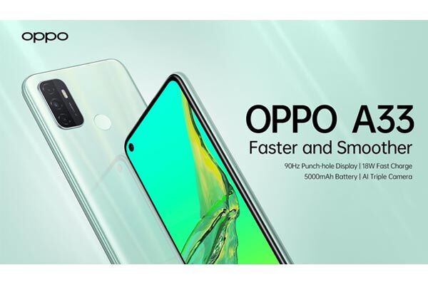 इस स्मार्टफोन में पंच होल डिजाइन के साथ 6.5 इंच का HD+ (720x1600 पिक्सल्स रिज़ॉल्यूशन) डिस्प्ले दिया गया है, जिसका रिफ्रेश रेट 90Hz है। इसमें क्वालकॉम स्नैपड्रैगन 460 प्रोसेसर, 3 जीबी की रैम और 32 जीबी की इंटरनल स्टोरेज दी गई है। स्टोरेज को माइक्रोएसडी कार्ड के जरिए 256 जीबी तक बढ़ाया जा सकता है। फोन में 5000mAh की बैटरी दी गई है, जो 18वॉट फास्ट चार्जिंग सपॉर्ट करती है। फोन में ट्रिपल रियर कैमरा सेटअप दिया गया है। रियर कैमरा में 13 मेगापिक्सल का प्राइमरी सेंसर, 2 मेगापिक्सल का डेप्थ सेंसर, और 2 मेगापिक्सल का मैक्रो लेंस मिलता है। कैमरा में 6x डिजिटल जूम, प्रोफेशनल मोड, पैनोरमा मोड और टाइम लैप्स जैसे फीचर्स दिए गए हैं। सेल्फी और विडियो कॉलिंग के लिए ओप्पो ए33 में 8 मेगापिक्सल का फ्रंट कैमरा मिलता है।