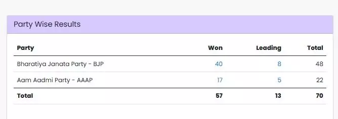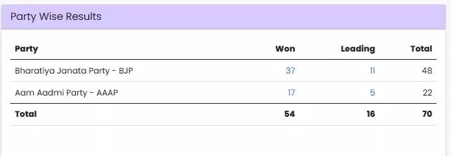 बीजेपी को 40और आप को 17 सीट पर मिली जीत