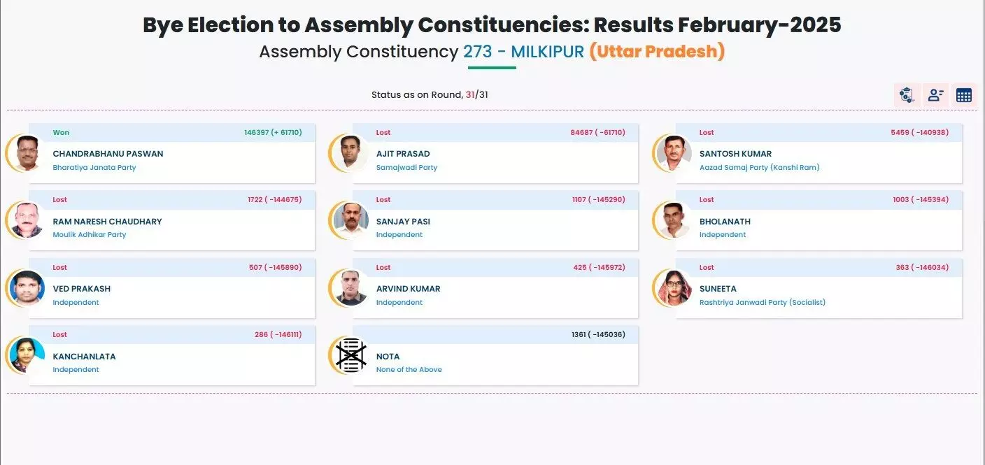 Milkipur By Election Results 2025: मिल्कीपुर में बीजेपी की प्रचंड जीत, चंद्रभानु पासवान ने 61,000 वोटों से सपा को हराया...