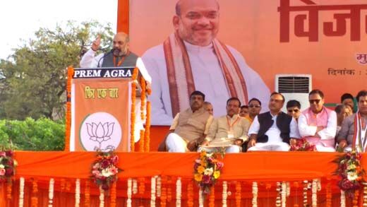 आगरा काॅलेज मैदान में आयोजित सभा को संबोधित करते हुए भाजपा अध्यक्ष अमित शाह ने कहा कि 2019 का लोकसभा चुनाव देश के 50 करोड़ गरीबों के कल्याण का चुनाव है, आतंकवाद को जड़ से खत्म करने का चुनाव है, पाकिस्तान को मुंहतोड़ जवाब देने का चुनाव है। उन्होंने कहा कि देश में एक ओर राष्ट्र की सुरक्षा के प्रति समर्पित एनडीए गठबंधन है, तो वहीं दूसरी ओर कांग्रेस पार्टी एवं अन्य विपक्षी दलों का ऐसा महागठबंधन है जिसके लिए देश नहीं, केवल अपना स्वार्थ और भ्रष्टाचार ही प्राथमिकता है। सभा को उप्र के मुख्यमंत्री योगी आदित्यनाथ ने भी संबोधित किया। मंच पर भाजपा के प्रमुख पदाधिकारी आदि उपस्थित रहे।
