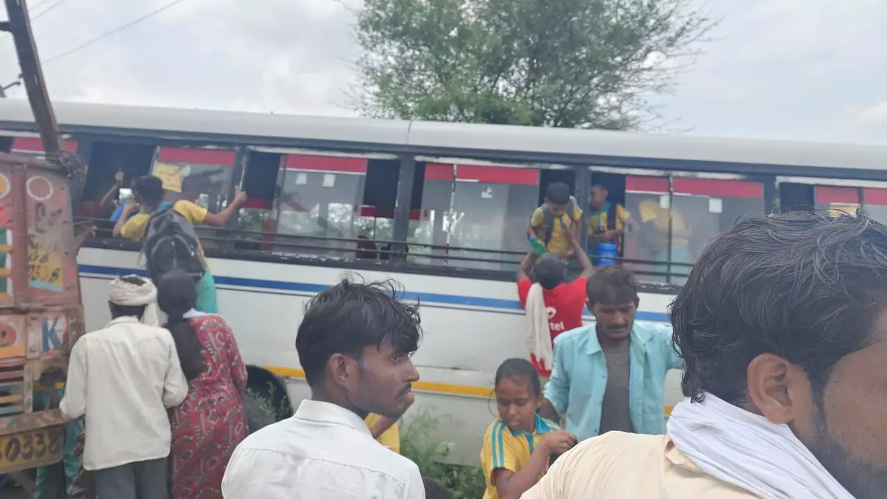 स्कूल बस और ट्रक की टक्कर में बस चालक सहित चार लोग घायल