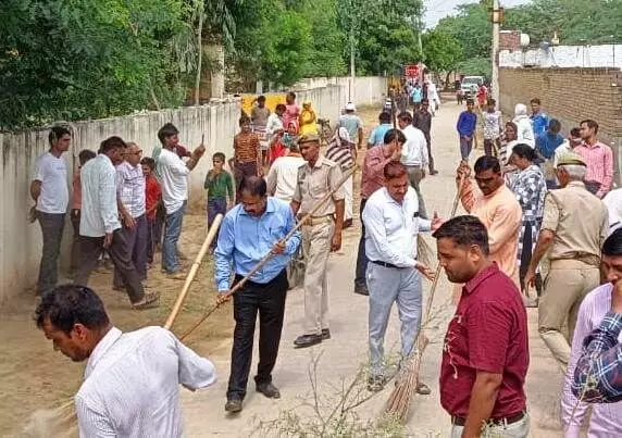 गांव मंस्या में साफ-सफाई कर अधिकारियों ने किया श्रमदान