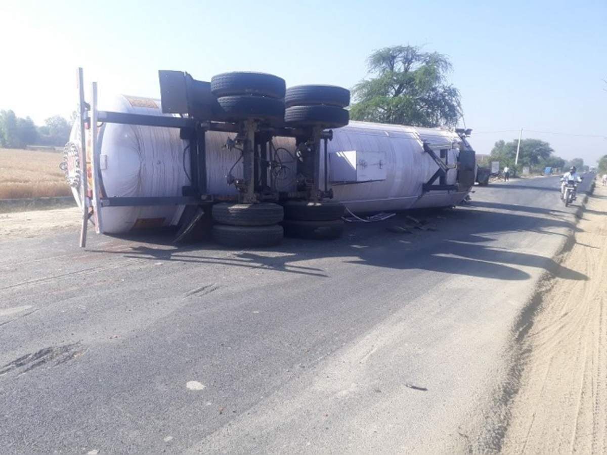 आगरा में LPG गैस से भरा टैंकर पलटा, 5 घंटे रिसाव, हाइवे रहा जाम