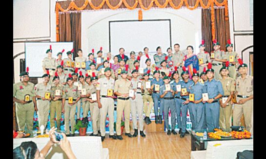 आगरा। एनसीसी आर्मी, महिला व एयर विंग के संयुक्त पुरस्कार वितरण एवं वार्षिक समारोह में एनसीसी कैडेट्स को सम्मानित किया गया। आगरा कॉलेज में आयोजित समारोह में तीनों विंग्स के कैडेट्स ने रंगारंग सांस्कृतिक कार्यक्रम भी प्रस्तुत किए।