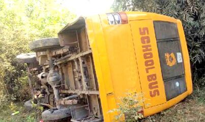 मिस्त्री चला रहा था स्कूल बस, पलटने पर 11 बच्चे घायल