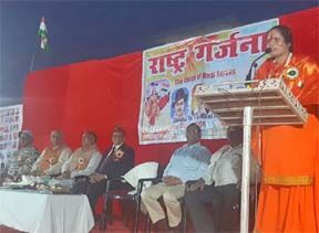 आगरा। भारत माता के तीन सपूतो ने हँसते हुए बन्दें मातरम का जय घोष किया और फाँसी के फंदो को चूमते हुए सर्वोच्च बलिदान दिया। ये बलिदान आज भी हम सब के लिए प्रेरणा का स्रोत है। यह कहना था डॉ. साध्वी प्राची आर्य जी का। शनिवार को वह राष्ट्रीय अस्मिता के प्रतीक वीर बलिदानियों की स्मृति में राष्ट्रीय स्वयंसेवक संघ, पश्चिम महानगर विद्यार्थी कार्य योजना द्वारा जयपुर हाउस स्थित जनक पार्क में आयोजित राष्ट्र गर्जना कार्यक्रम को संबोधित कर रहीं थी। साध्वी प्राची ने कहा कि हमें अपने देश भक्तों की कुर्बानियां हमेशा प्ररेणा देती रहेंगी, भारत की माँओ ने वीरों और रास्ट्र भक्तों को पैदा किया है। झांसी की रानी भी इस का एक उदाहरन है। कार्यक्रम में मुख्य अतिथि कर्नल डॉ. सीके सिंह (सेवानिवृत्त), भाजपा के पंजाब संघठन मंत्री दिनेश, डॉ मनोज रावत, कर्नल खान मौजूद रहे।
