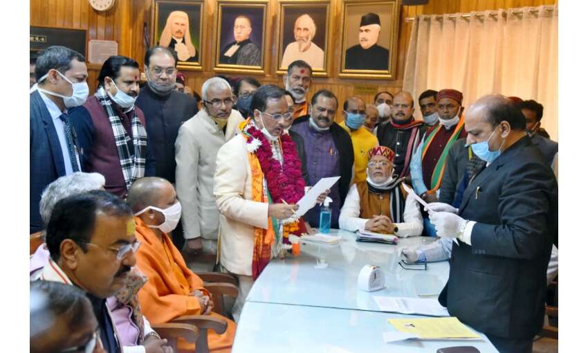 लखनऊ। प्रदेश में होने विधान परिषद के चुनावों के लिए नामांकन प्रक्रिया जारी है। आज सोमवार को मुख्यमंत्री योगी आदित्यनाथ के नेतृत्व में 10 भाजपा उम्मीदवारों ने नामांकन पत्र दाखिल किया। सबसे पहले उपमुख्यमंत्री डाॅ दिनेश शर्मा ने दाखिल किया।