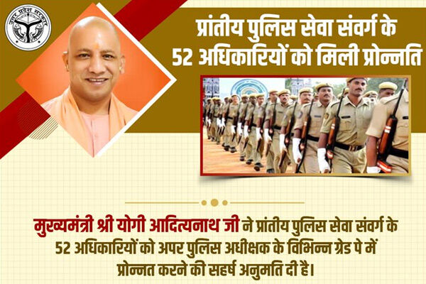 योगी के इस फैसले से प्रांतीय पुलिस सेवा संवर्ग के 52 अधिकारी लाभान्वित होंगे। नव प्रोन्नत अधिकारियों में 21 अधिकारियों को अपर पुलिस अधीक्षक, विशेष श्रेणी-एक, ग्रेड पे-8700 में, 21 अधिकारियों को अपर पुलिस अधीक्षक, विशेष श्रेणी-एक, ग्रेड पे-8900 में तथा 10 अधिकारियों को अपर पुलिस अधीक्षक, उच्चतर श्रेणी ग्रेड पे-10000 में प्रोन्नति दी गई है। मुख्यमंत्री के इस फैसले से प्रोन्नति प्राप्त पुलिस अधिकारियों की दिवाली की खुशी दोगुनी होनी तय है।