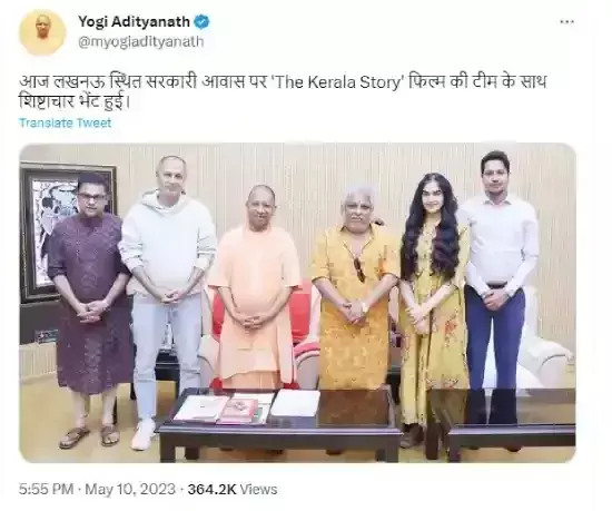 केरल में बड़े पैमाने पर हिन्दू महिलाओं के धर्मांतरण और उन्हें आतंकी गतिविधियों में लिप्त किए जाने पर आधारित 'द केरल स्टोरी' की चर्चाओं के बीच अब उत्तर प्रदेश में इस फिल्म को टैक्स फ्री किया गया है। यही नहीं, मुख्यमंत्री योगी आदित्यनाथ अपने पूरे मंत्रिमंडल के साथ इस फिल्म को देखेंगे भी। मुख्यमंत्री कार्यालय के आधिकारिक ट्विटर हैंडल से इस संबंध में मंगलवार को ही ट्वीट कर जानकारी दी गयी थी।ट्वीट में लिखा गया कि मुख्यमंत्री योगी अपने पूरे मंत्रिमंडल के साथ 12 मई को लखनऊ में 'द केरल स्टोरी' फिल्म देखेंगे। वहीं, मुख्यमंत्री योगी के आधिकारिक ट्विटर हैंडल पर मंगलवार को लिखा गया था कि 'द केरल स्टोरी' को यूपी में टैक्स फ्री किया जाएगा। योगी सरकार के इस निर्णय की सोशल मीडिया पर काफी तारीफ हुई। लोग हर किसी से थिएटर में जाकर फिल्म देखने और इसको प्रमोट करने के लिए आग्रह कर रहे हैं।