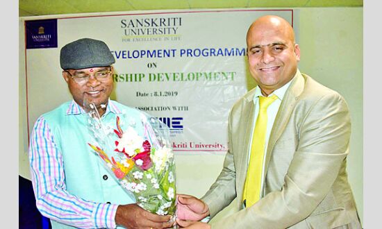 मथुरा। शिक्षण दुनिया में सबसे बढिय़ा, रोमांचक और समाज सेवा का कार्य है। एक कुशल शिक्षक के सामने चुनौतियां भी कम नहीं होतीं लेकिन जो इन चुनौतियों को स्वीकारते हुए छात्र-छात्राओं के सम्मुख नजीर स्थापित करता है, सही मायने में वही एक कुशल और आदर्श शिक्षक है। उक्त उद्गार एमएसएमई और संस्कृति यूनिवर्सिटी के संयुक्त प्रयासों से आयोजित फैकल्टी डेवलपमेंट प्रोग्राम में शिक्षकों को सम्बोधित करते हुए इंटरनेशनल मास्टर ट्रेनर एंड मोटीवेशनल स्पीकर ब्रिगेडियर सुनील कुमार मुदगिल ने व्यक्त किए। कार्यक्रम का शुभारम्भ प्रिंसीपल डायरेक्टर एमएसएमई (भारत सरकार) आर. पन्नीरसेल्वम, कुलपति डॉ. राणा सिंह और डीन डॉ. कल्याण कुमार ने माँ सरस्वती की प्रतिमा के सम्मुख दीप प्रज्वलित कर किया।