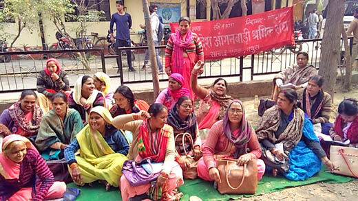 आंगनबाड़ी कार्यकत्रियों ने प्रदर्शन कर दिया धरना