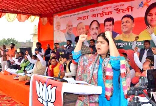 शनिवार को पूनम महाजन ने मथुरा के रामलीला मैदान से भाजपा की विजय संकल्प बाइक रैली को झंडी दिखाकर रवाना किया। इस दौरान उन्होंने भाजपा कार्यकर्ताओं को संबोधित करते हुए उनमें जोश भरा, तो वहीं विपक्ष पर जमकर बरसीं। पूनम महाजन ने कहा कि यह पहली दफा है जब विश्व में भारत की ताकत बढ़ी। भारतीय वीर अभिनंदन को 48 घंटे में पाकिस्तान ने छोड़ दिया। एयर स्ट्राइक पर सवाल उठाने वाली जम्मू-कश्मीर की पूर्व मुख्यमंत्री महबूबा मुफ्ती पर पूनम महाजन ने कहा कि सरकार के निर्णय का सम्मान करना चाहिए। जो लोग सवाल उठा रहे हैं वो सेना के पराक्रम पर सवाल उठा रहे हैं। शहादत पर राजनीति कर रहे हैं। कार्यक्रम के बाद भाजयुमो अध्यक्ष पूनम महाजन ने वृंदावन जाकर बांकेबिहारी मंदिर में दर्शन कर आगामी चुनावों में जीत की कामना की। उन्होंने देश के शहीदों की आत्मा की शांति के लिए बांकेबिहारी के श्रीचरणों में प्रार्थना की। सेवायत आकाश गोस्वामी ने उन्हें पूजा-अर्चना कराई। पूनम महाजन ने कहा कि देश में इस समय चल रहा घटनाक्रम जल्द से जल्द ठीक होना चाहिए।