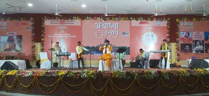अयोध्या। हम कथा सुनाते राम सकल गुणधाम की, ये रामायण है पुण्य कथा श्रीराम की।। प्रभु श्रीराम का गुणगान करने के साथ सांस्कृतिक मंच पर लोक कलाकारों ने भजनों के जरिए जादुई आवाज से श्रीराम जन्मभूमि पर श्रीराम सत्संग भवन को भक्तिमय बना दिया। रूद्राक्षतम और शिव तांडव ने तांडव मचाया तो वहीं स्वर लहरियों की मधुरता ने लोगों को गुनगुनाने व झूमने पर मजबूर कर दिया। मौका था अयोध्या उत्सव का।