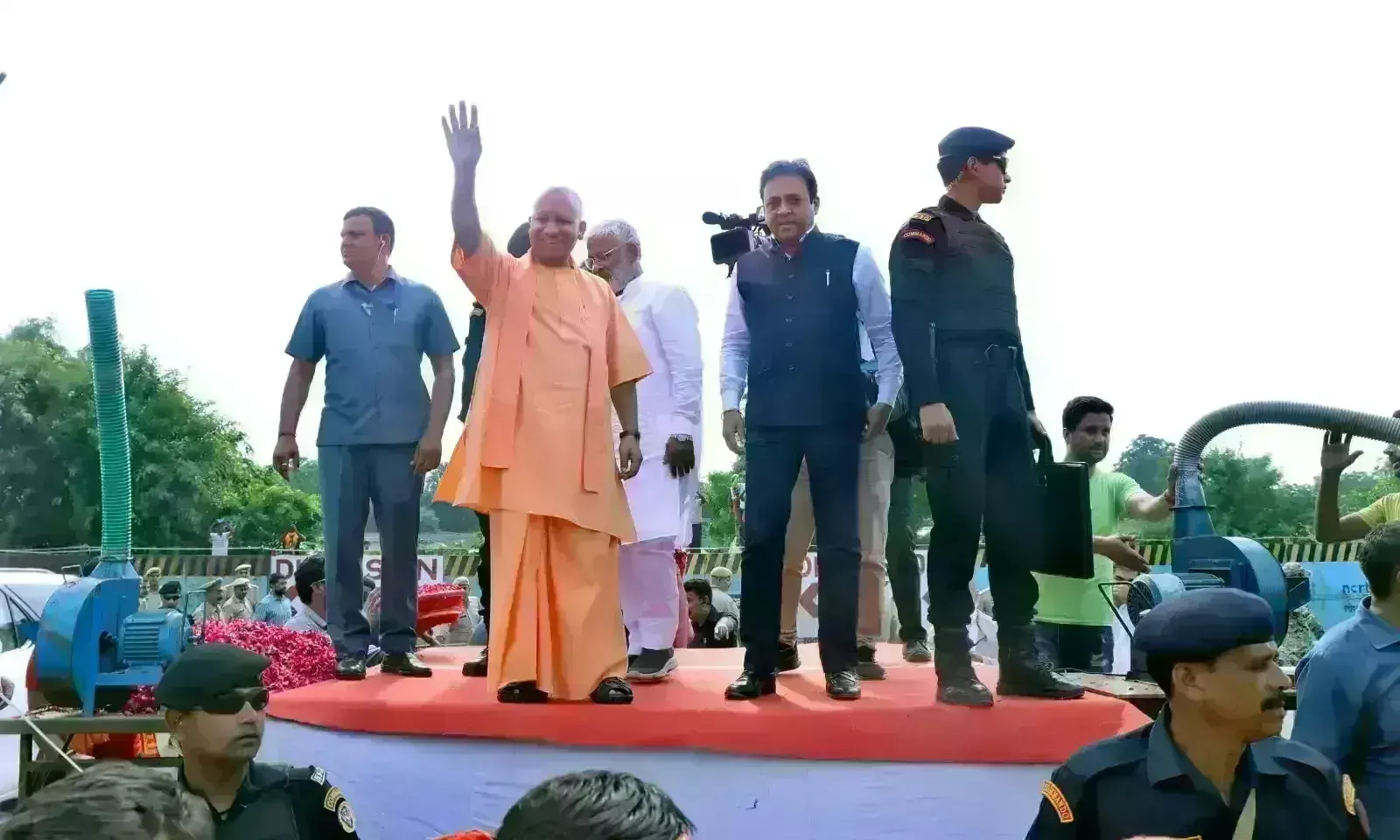 मुख्यमंत्री आदित्यनाथ ने कांवड़ियों पर की पुष्प वर्षा, शिवभक्तों ने लगाए योगी-योगी के नारे