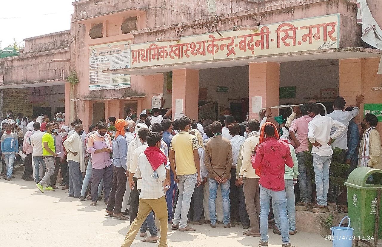 सिद्धार्थनगर (बढ़नी): कोरोना संक्रमण के लगातार बढ़ते मामलों के बीच त्रिस्तरीय पंचायत चुनाव में मतगणना एजेंट बनने के लिए पीएचसी बढ़नी पर गुरुवार को कोरोना की जांच कराने वालों की भारी भीड़ लगी रही।