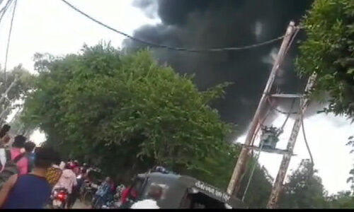 उप्र : पेंट फैक्ट्री में धमाकों के साथ लगी भीषण आग, 60 फुट तक उठी लपटें, घर छोड़ भागे लोग