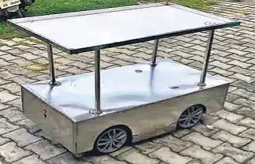 यह ट्रॉली चार लेयर की है। सबसे ऊपर खाने की थाली होगी। उसके नीचे पानी, तीसरे लेयर में दवाइयां और अंतिम लेयर में न्यूजपेपर रखा जा सकेगा।