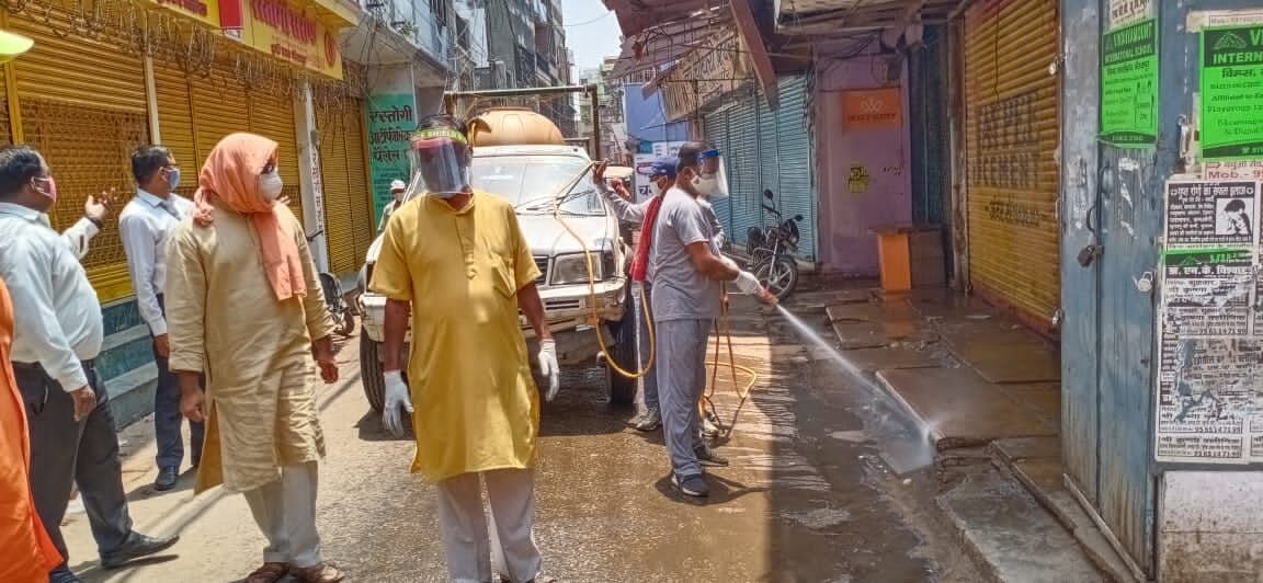 मीरजापुर: नगर पालिका अध्यक्ष मनोज जायसवाल शनिवार की दोपहर नगर पालिका के अधिकारियों और कर्मचारियों के साथ सैनिटाइजेसन की कमान संभाली। इस दौरान पालिकाध्यक्ष ने मुकेरी बाजार से इस व्यापक सेनिटाइजेसन का कार्य प्रारंभ किया और नगर के मार्गो और घरों को खुद सैनिटाइज करने का काम किया।