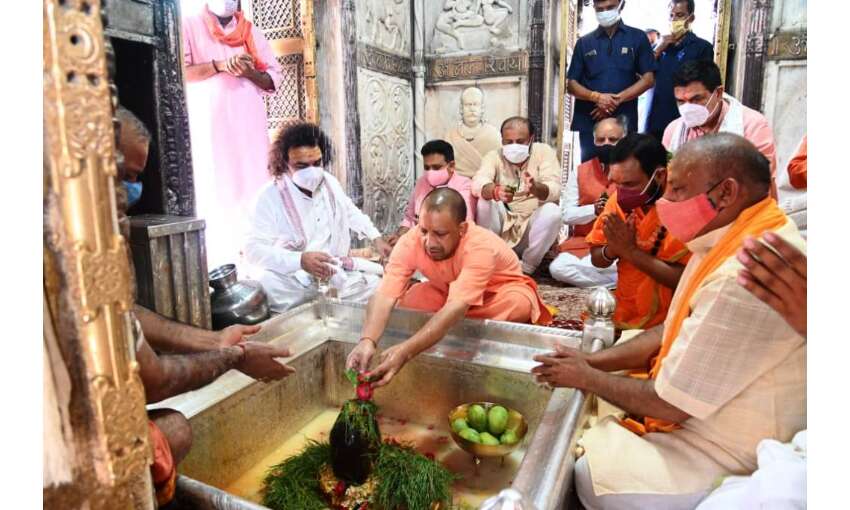 प्रधानमंत्री के आगमन से पहले मुख्यमंत्री का दौरा, बाबा विश्वनाथ का अभिषेक किया