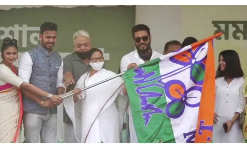 हुगली जिले के साहागंज मैदान में आज हुई जनसभा के दौरान क्रिकेटर मनोज तिवारी के साथ अभिनेत्री शाइनी घोष, निर्माता राज चक्रवर्ती, अभिनेत्री मोनाली दे, जून मालिया सहित अभिनेता कांजन मल्लिक ने तृणमूल कांग्रेस की सदस्यता ली। मूल रूप से राजधानी कोलकाता से सटे हावड़ा जिले में पले बढ़े 35 वर्षीय क्रिकेटर मनोज तिवारी को तृणमूल का दामन थमाते हुए मुख्यमंत्री ममता बनर्जी के चेहरे पर खुशी थी।
