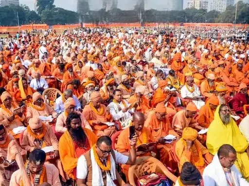 रविवार की सुबह कोलकाता का ब्रिगेड परेड ग्राउंड एक ऐसा दृश्य बना, जिसे देख हजारों लोग भावुक हो उठे। चारों ओर गीता के श्लोकों की ध्वनि, बीच में विशाल मैदान, और उसमें बैठी लाखों की भीड़—सब मिलकर ऐसा माहौल बना रहे थे कि कुछ देर के लिए पूरा शहर आध्यात्मिक लय में खो गया हो।