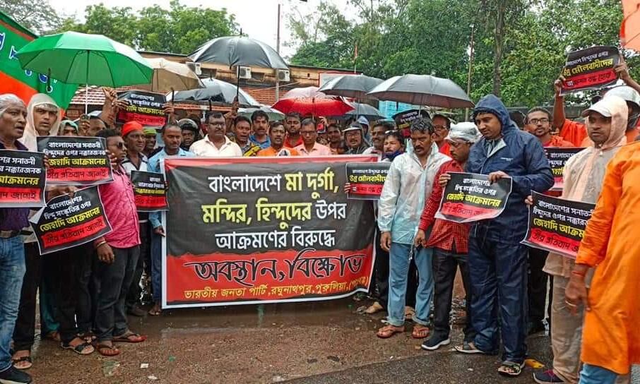 बांग्लादेश में हिन्दुओं पर हुए हमलों के विरोध में बंगाल में भाजपा ने किया प्रदर्शन