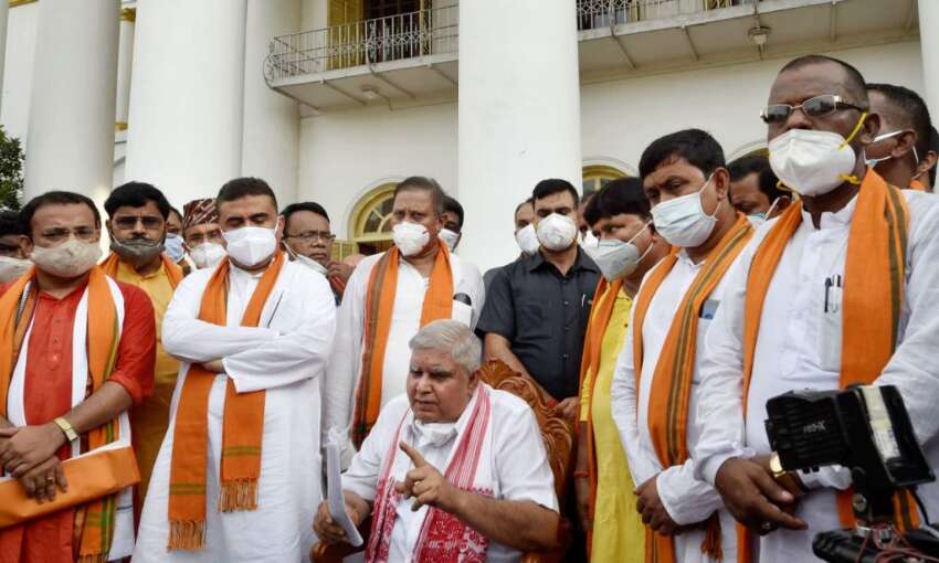 धनखड़ ने हिंसा को लेकर राज्यपाल पर हमला बोलते हुए कहा कि राज्य में हिंसा का तांडव चल रहा है, लेकिन सरकार के कानों में जूं नहीं रेंग रही है। उन्होंने कहा कि नई सरकार को आए हुए एक माह से अधिक हो चुका है, लेकिन किसी भी कैबिनेट की बैठक में हिंसा पर चर्चा नहीं हुई है। गौर हो कि विधानसभा चुनाव के बाद भाजपा लगातार हिंसा का आरोप लगा रही है। दावा है कि चुनाव के बाद भाजपा के 40 से अधिक कार्यकर्ताओं की हत्या हो चुकी है।